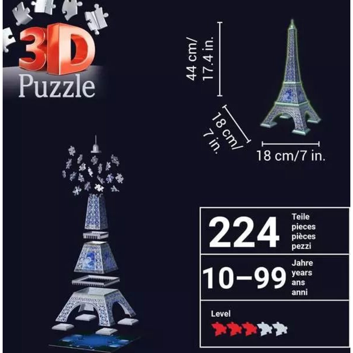 Ravensburger 3D Puzzle - Eiffelturm Glow-in-the-Dark Edition, 224 Teile