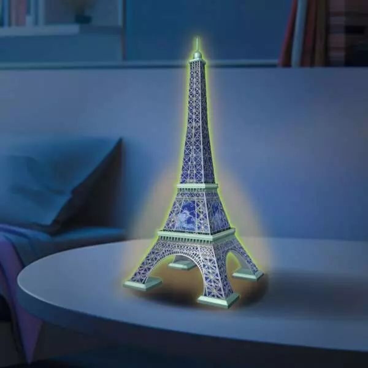Bei hellen Raumverhältnissen laden sich die phosphoreszierenden Kunststoffteile auf und lassen den Eiffelturm dann bei Dunkelheit zart leuchten. Das Modell wird dadurch zu einem echten Hingucker in einem jeden Zimmer, egal ob bei Tag oder Nacht.