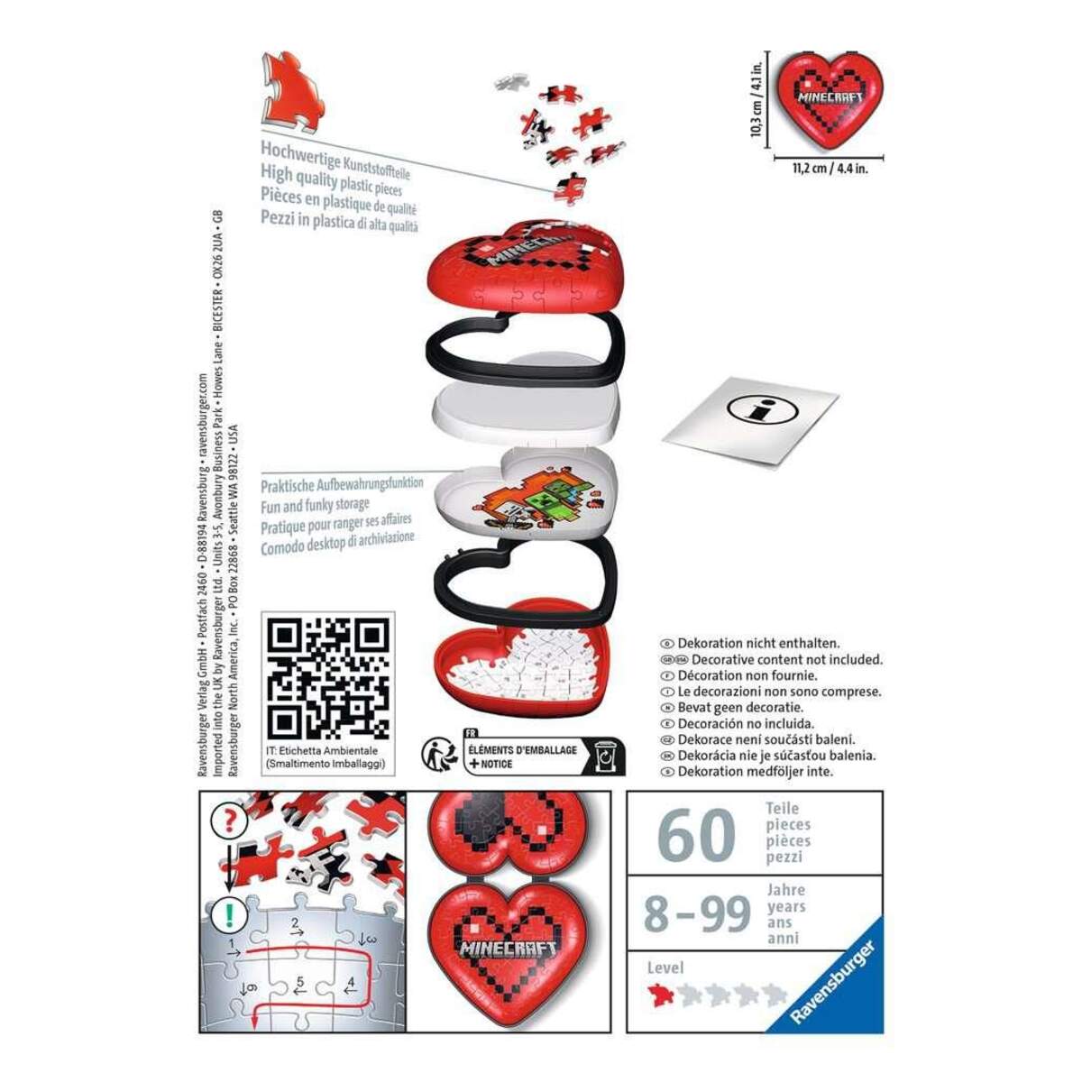 Ravensburger 3D Puzzle - Herzschatulle: Minecraft, 54 Teile