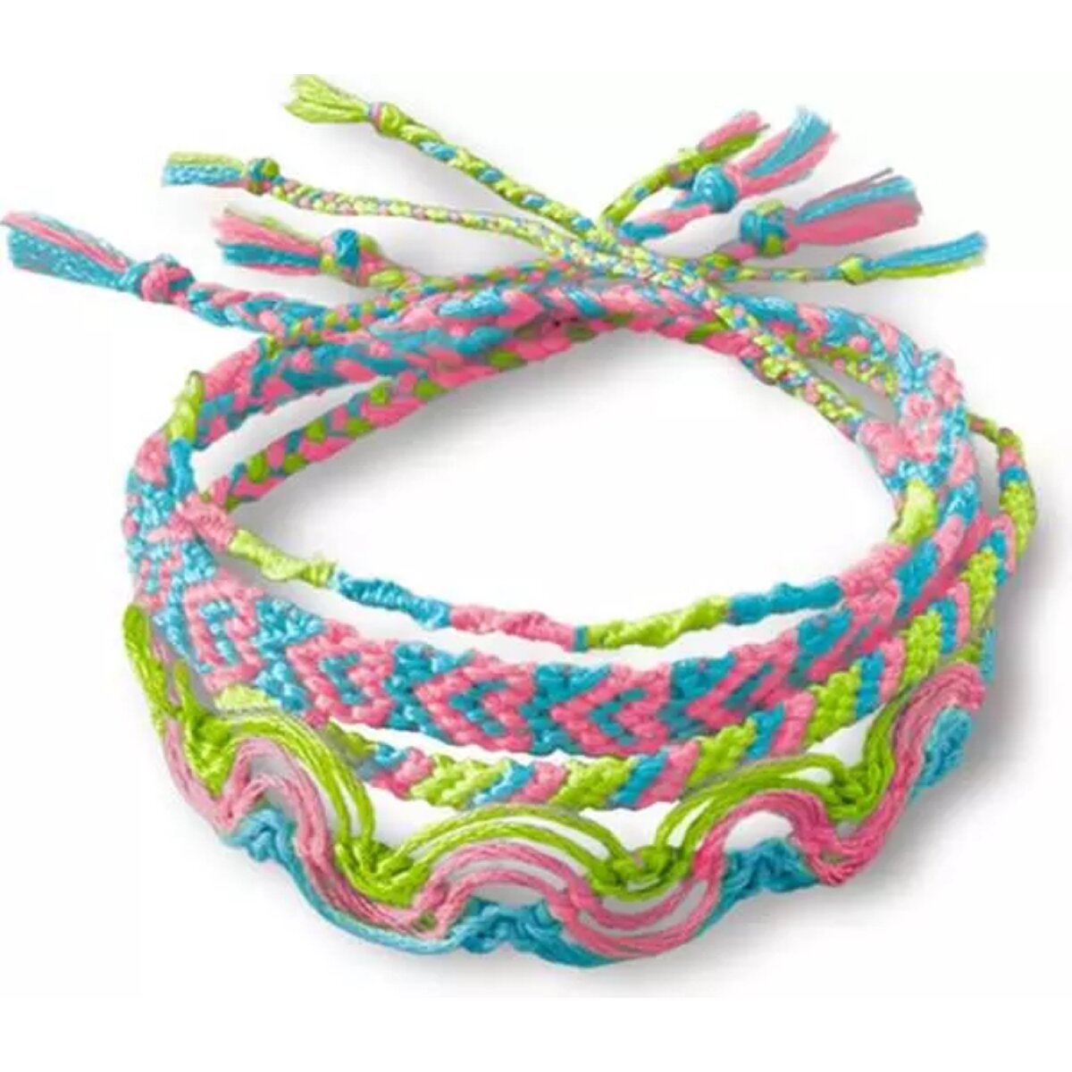 Um gleichmäßige Ergebnisse zu erzielen, liegt eine Unterlage zum Knüpfen bei und eine Sicherheitsnadel kann für Korrekturen oder kompliziertere Knüpfmuster eingesetzt werden. Eine Anleitung gibt verschiedene Arten des Knüpfens verschiedener Freundschaftsbändchen vor. Die Freundschaftsbändchen können an Freunde verschenkt werden oder den eigenen Arm schmücken.