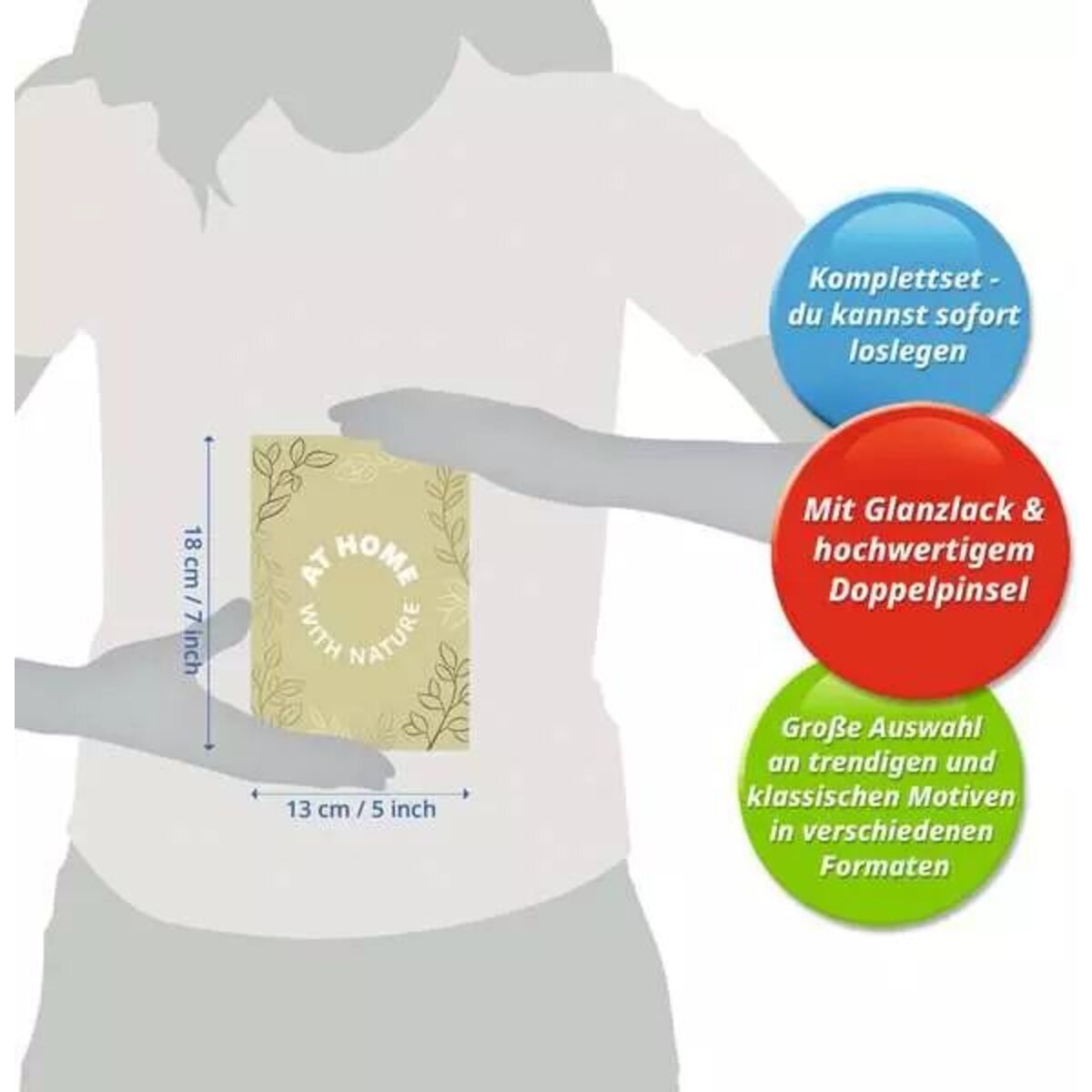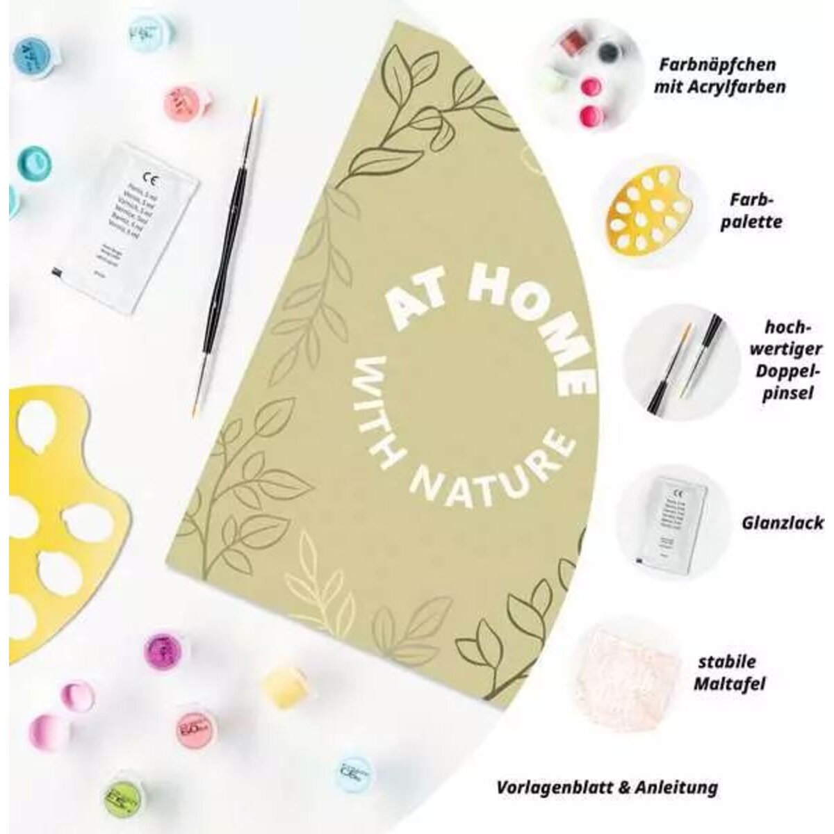 Coole Motive, leuchtende Farben und glänzender Lack für ein perfektes Finish. Das trendige Motiv At home with Nature sorgt für großartigen Malspaß für Erwachsene ab 12 Jahren. Die Motivlinien sind bereits aufgedruckt und nummeriert und werden mit den fertig gemischten Acrylfarben ausgemalt. Das ist Malspaß mit Erfolgsgarantie für einen einzigartigen Wandschmuck. So einfach war malen noch nie!