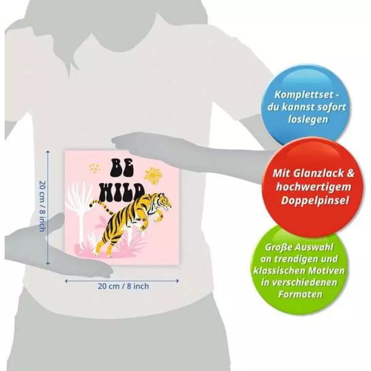 Coole Motive, leuchtende Farben und glänzender Lack für ein perfektes Finish. Das trendige Motiv Be Wild sorgt für großartigen Malspaß für Erwachsene ab 12 Jahren. Die Motivlinien sind bereits aufgedruckt und nummeriert und werden mit den fertig gemischten Acrylfarben ausgemalt. Das ist Malspaß mit Erfolgsgarantie für einen einzigartigen Wandschmuck. So einfach war malen noch nie!