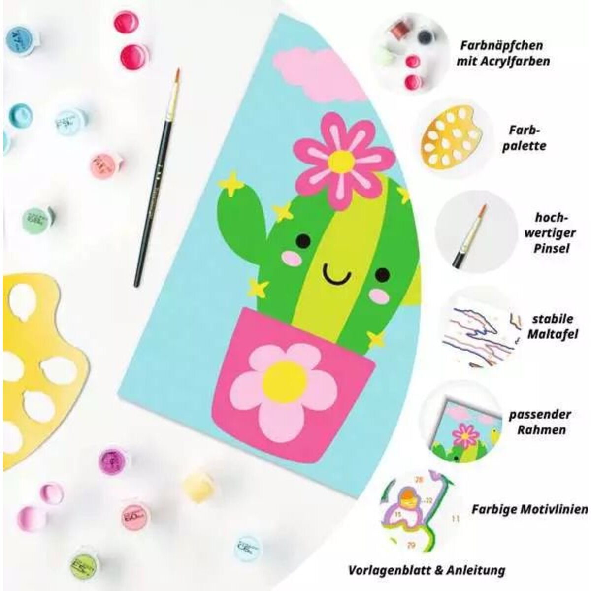 Die schönen Motive zum Ausmalen sind eine tolle Geschenkidee für Kinder ab 7 Jahren und eine schöne Dekoration für das Kinderzimmer. In diesem Malset sind bereits 6 fertig gemischte Acrylfarben enthalten.