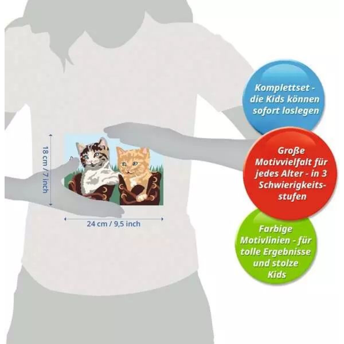 Mit Malen nach Zahlen von Ravensburger lernen die Kinder Flächen sorgfältig auszumalen, ihr Maltalent zu verbessern sowie feinmotorische Fähigkeiten zu entwickeln. Am Ende stehen Freude, Stolz und ein Erfolgserlebnis, das die Lust am Weitermalen weckt.