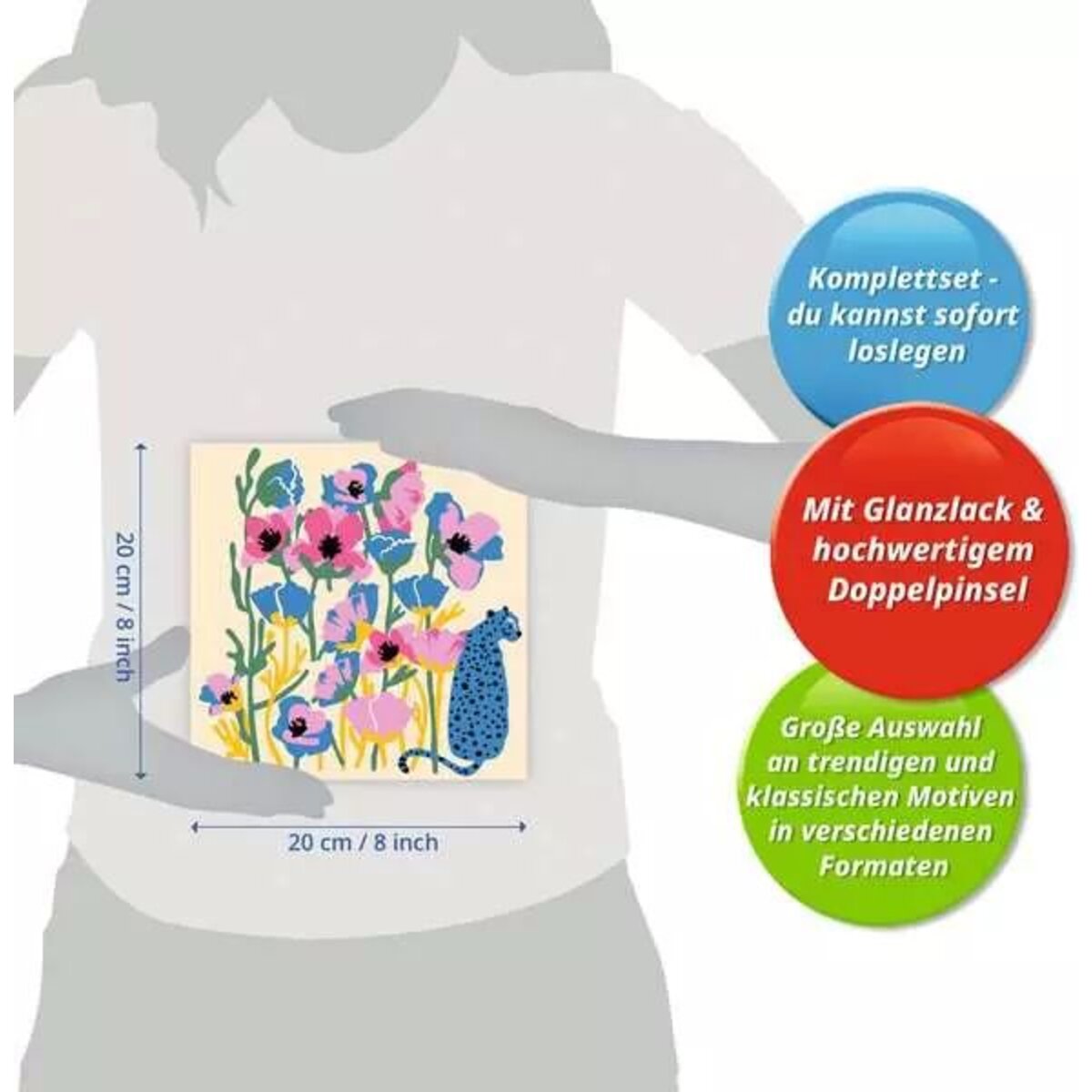 Coole Motive, leuchtende Farben und glänzender Lack für ein perfektes Finish. Das trendige Motiv Poppy sorgt für großartigen Malspaß für Erwachsene ab 12 Jahren. Die Motivlinien sind bereits aufgedruckt und nummeriert und werden mit den fertig gemischten Acrylfarben ausgemalt. Das ist Malspaß mit Erfolgsgarantie für einen einzigartigen Wandschmuck. So einfach war malen noch nie!