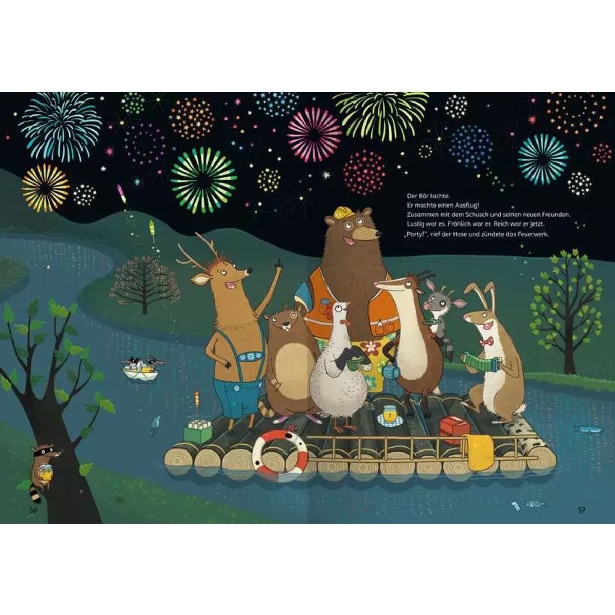 Der Sammelband enthält Bilderbuch- und Vorlesegeschichten von vielen bekannten Autorinnen und Autoren, die Klein und Groß mitnehmen auf eine Reise ins Land der Träume und der Fantasie. Dort treffen wir u.a. einen Frosch, der davon träumt, Balletttänzer zu werden, drei mutige Mäuse, die sich einem Riesen stellen, einen kleinen Affenjungen, der für seine Mama den größten Schatz der Welt sucht, einen Bären, der unverhofft neue Freunde findet, die beliebten Schweinebrüder Piggeldy und Frederick, die auf jede Frage die passende Antwort haben, uvm.