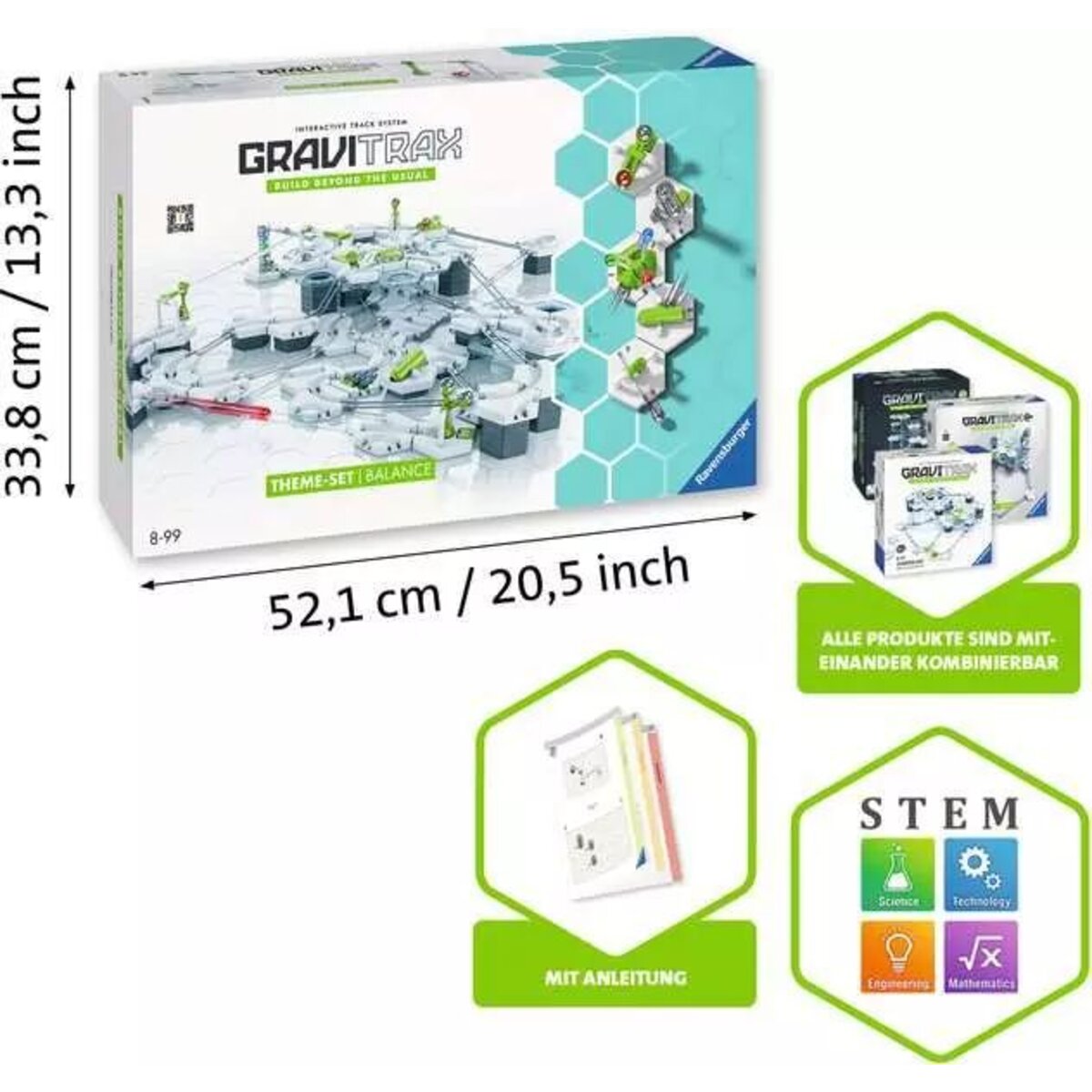 GraviTrax ist ein flexibel erweiterbares, interaktives Kugelbahnsystem für Kinder ab 8 Jahren: Mit GraviTrax bauen Kinder, Jugendliche und Erwachsene nicht nur einfache Kugelbahnen. Sie erschaffen einzigartige Kugelbahnwelten. Durch das freie Konzipieren der Kugelbahnen und das Erforschen des Rollverhaltens der Kugeln wird das Verständnis für Wissenschaft geschärft und Schwerkraft hautnah erlebbar. Das GraviTrax Universum beinhaltet drei spannende Linien – CORE, PRO und POWER. Alle GraviTrax Linien und Produkte können frei miteinander kombiniert werden. Durch unzählige Erweiterungen mit klassischen Bauelementen oder Steine, die besondere Action und Tricks ermöglichen, lässt sich das GraviTrax-Universum unendlich vergrößern. So kann jeder individell tüfteln, ausprobieren und über sich hinausbauen.