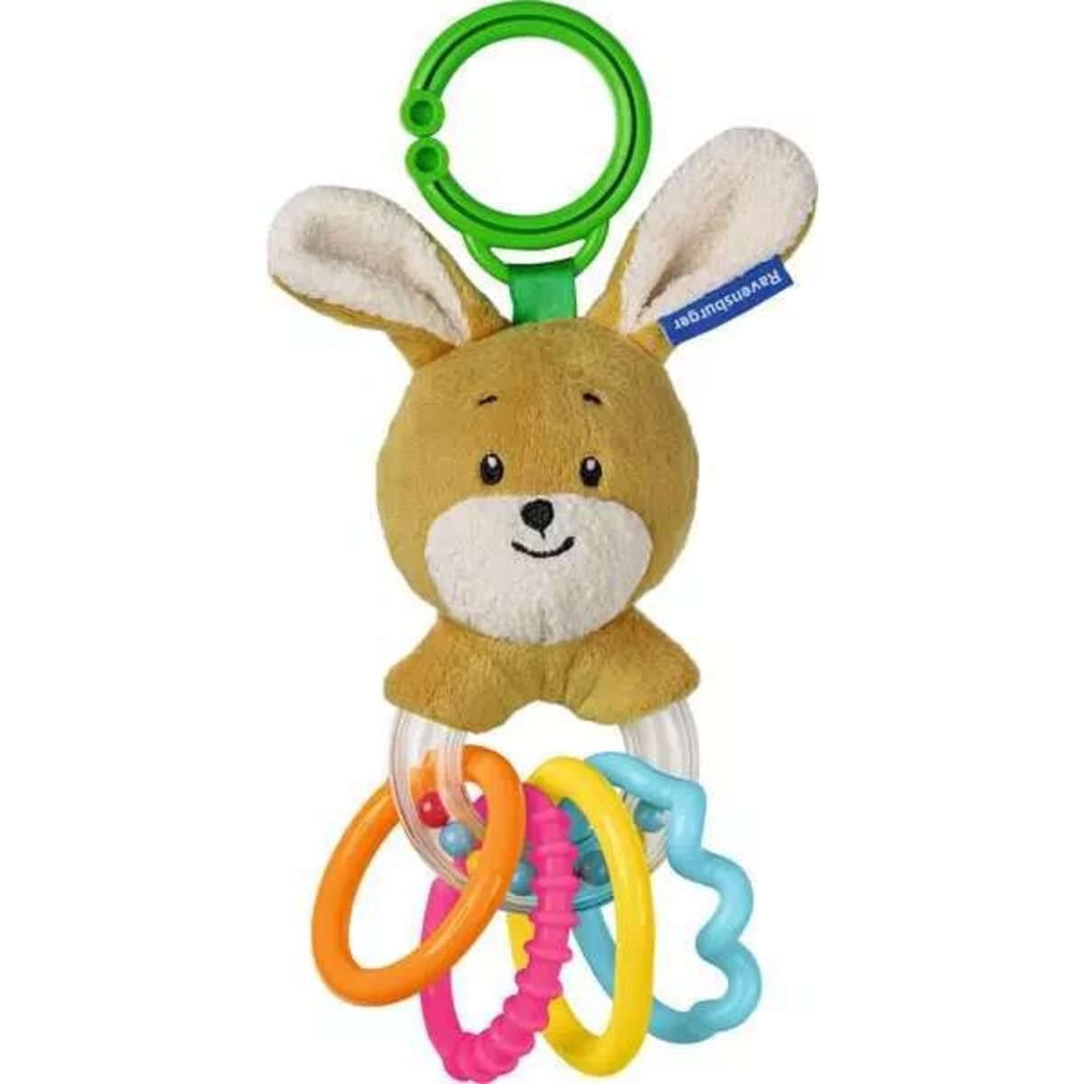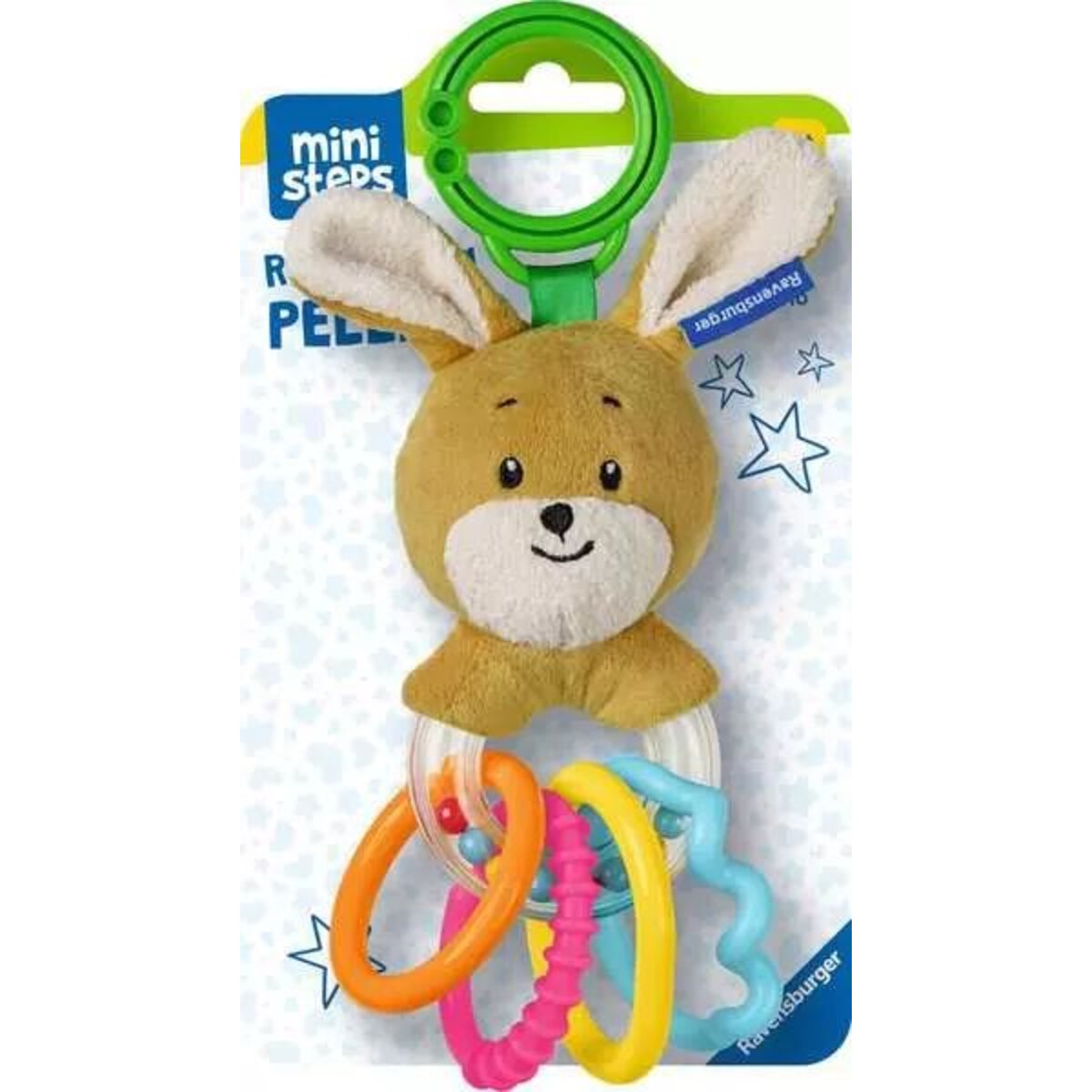 Mit der praktischen Aufhängung ist der flauschige Greifling schnell an Buggy, Kinderwagen oder Babyschale befestigt. Bunte Rasselperlen sowie 4 aufgesteckte Klapper-Ringe animieren schon die Kleinsten zum Greifen und Bewegen. Für extra Spielspaß lassen sich die unterschiedlich geformten Plastikringe auch als Kette zusammenstecken oder einzeln bespielen. Am transparenten Rasselring kann Baby das Häschen gut greifen und festhalten. So bleibt der Hase Pelle aus der Reihe ministeps lange interessant.