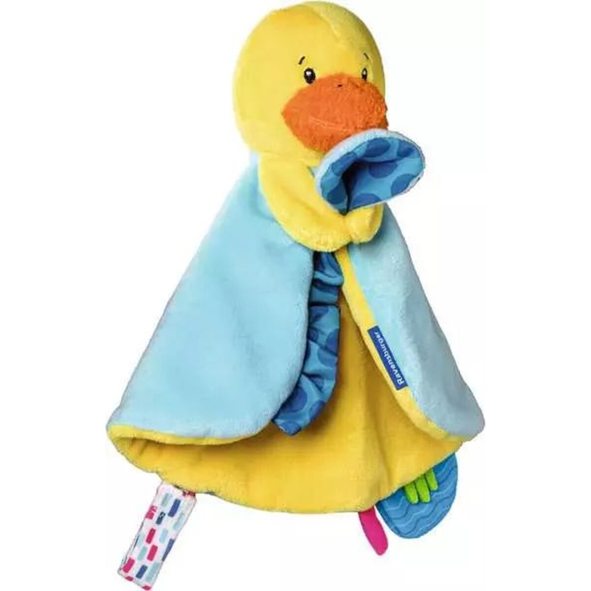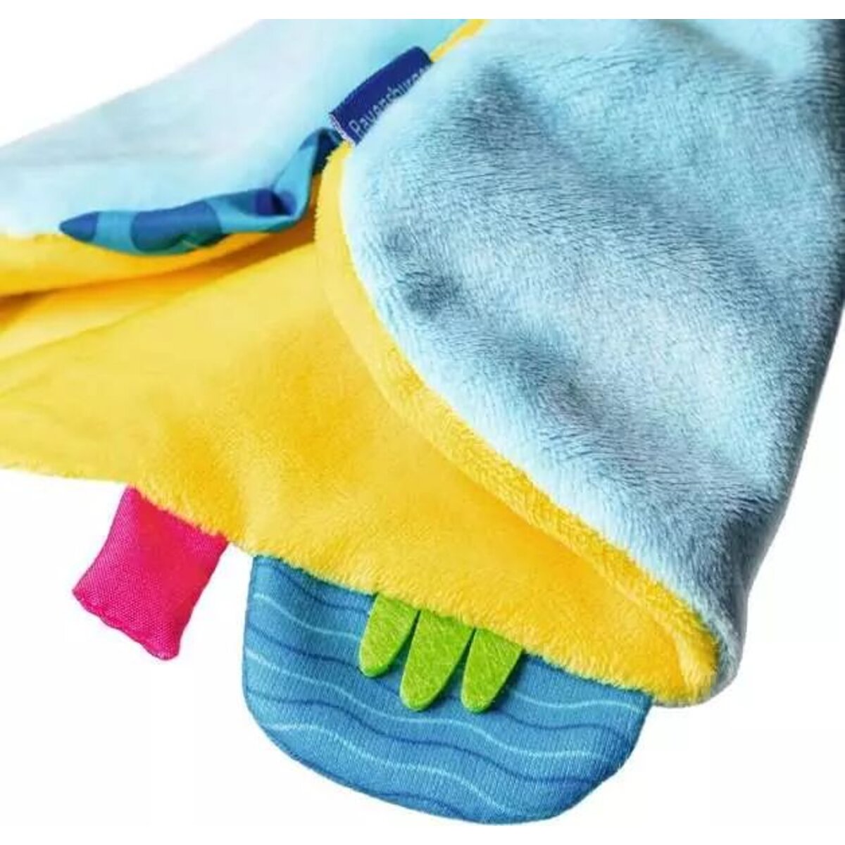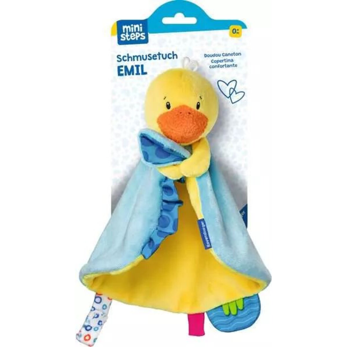 Das süße kuschelweiche Schnullertuch wird schnell zu Babys heißgeliebtem Begleiter für die ersten Lebensmonate. Das Schnuffeltuch nimmt vertraute Gerüche an und vermittelt damit Sicherheit und Geborgenheit. An der praktischen Klettschlaufe lässt sich Babys Schnuller befestigen, so bleibt er immer in Reichweite. Mit abwechslungsreichen Spielelementen zum Entdecken und In-den-Mund-Nehmen bietet das farbenfrohe Entchen Emil aus der Reihe ministeps auch für aktive Phasen viel Anregung.