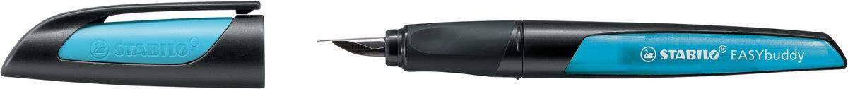 Schulfüller mit Standard-Feder M - STABILO EASYbuddy in schwarz/himmelblau - Schreibfarbe blau (löschbar) - Einzelstift - inklusive Patrone