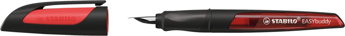 Schulfüller mit Standard-Feder M - STABILO EASYbuddy in schwarz/rot - Schreibfarbe blau (löschbar) - Einzelstift - inklusive Patrone