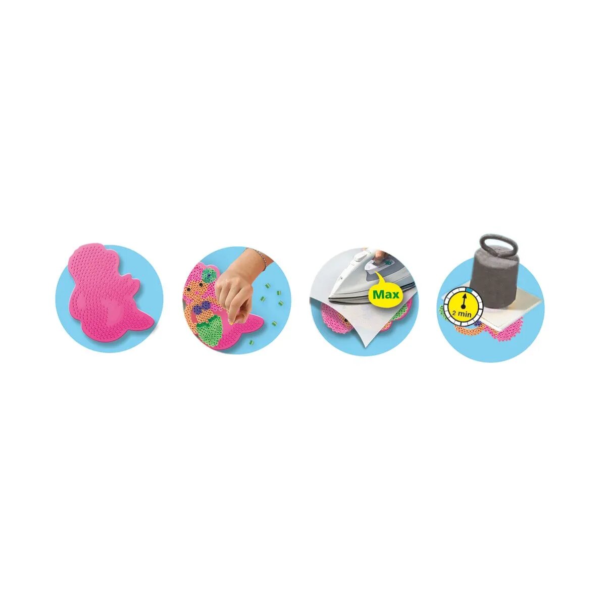 Das Schöne an Bügelperlen ist, dass man endlos viele Kreationen in allerlei Formen, Formaten und Farben damit herstellen kann. Mit diesem Bügelperlenset von SES Beedz bastelst du ganz einfach die schönsten Meerjungfrauen, sogar mit Glitzerschwanzflosse! Verwende die Beispiele auf der Verpackung oder entwirf deine eigenen Meerjungfraukreationen. Die Bügelperlen von SES Creative sind PVC-frei und von höchster Qualität. Mit Bügelperlen kannst du stundenlang kreativ sein und erhältst immer ein schön buntes Ergebnis.