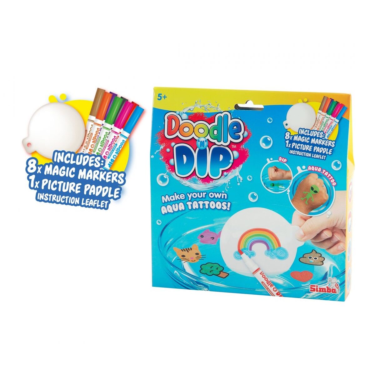 Mit der magischen „Doodle and Dip"-Technik wird es so einfach wie nie zuvor, ein eigenes Tattoo zu kreieren. Mithilfe der 8 bunten Aqua-Zauberstifte malst du dein Lieblings-Motiv auf das Pad, erweckst es im Wasser zum Leben und überträgst es dann ruckzuck auf die Haut – absolut hautfreundlich, abwaschbar & ganz ohne Kleber!