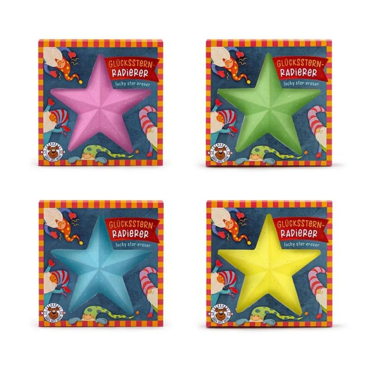 Trendhaus WICHTEL Glücksstern-Radierer, 1 Stück, 4-fach sortiert